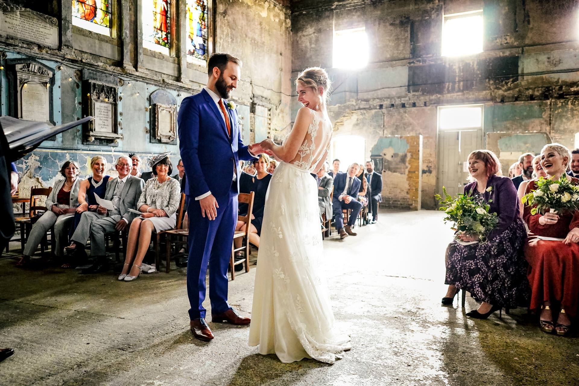 It being my first visit I’m happy to report that AMP Studios is a fabulous venue for a wedding. It sits on the Old Kent Road which is great for fans of Monopoly. Filling two railway arches with an ample courtyard outside – especially useful for cooling down afters LOTS of dancing!