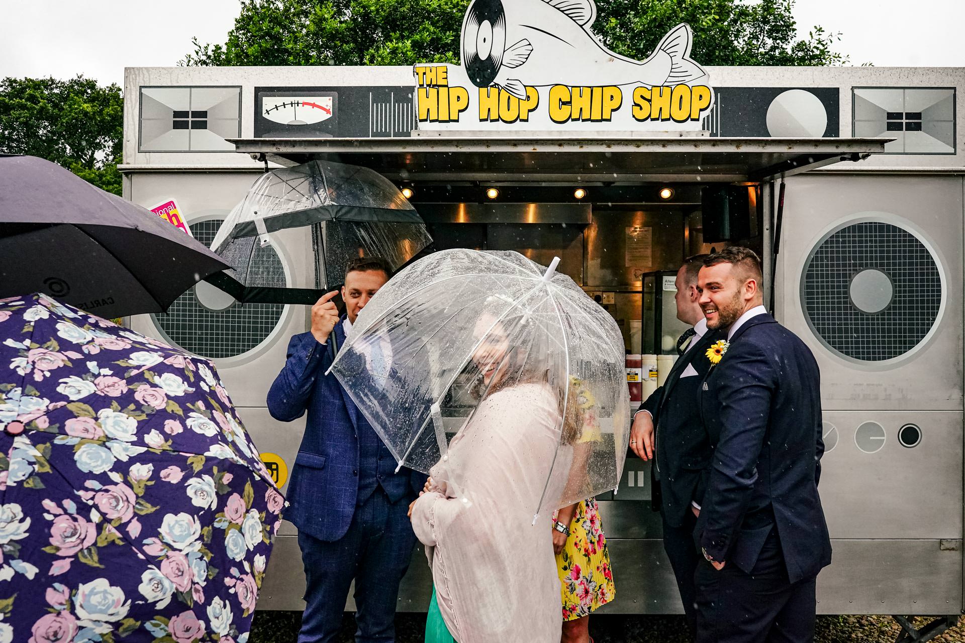 The wedding breakfast was supplied by The Hip Hop Chip Shop (the best Manchester Fish+Chips known to man) and necessitated a brolly dash to the catering van – all part of the fun of the day. If there is one thing I’ve learnt from this wedding day is that you CAN still dance in a tipi in wellies and a posh frock…